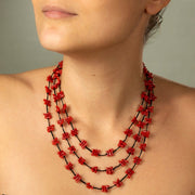 La collana a tre fili in corallo sardo è perfetta in tutte le stagioni.