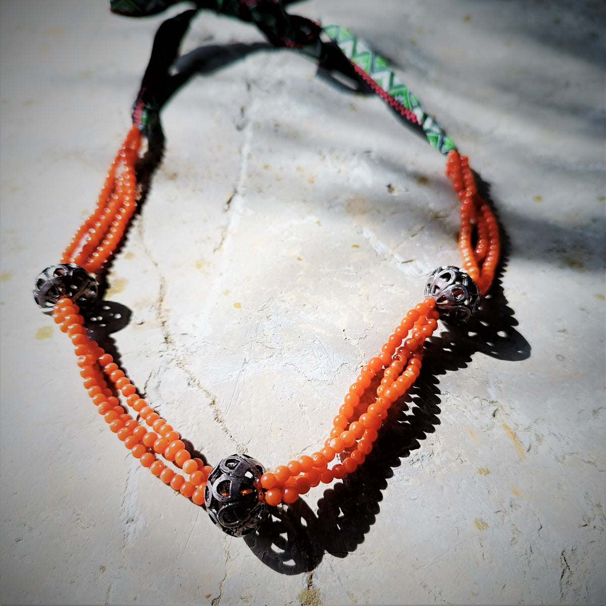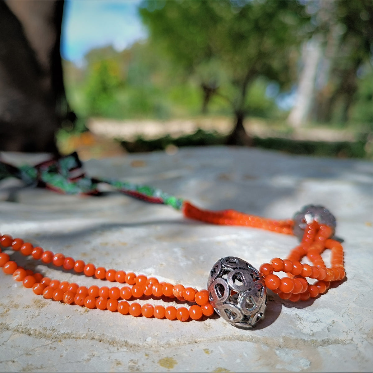 Tipica di Oliena e Dorgali dove i vaghi erano sempre in oro e la pietra preziosa il Corallo rosso del Mediterraneo.