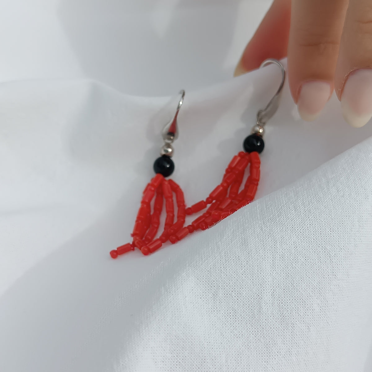 Gli orecchini Galatea con corallo e onice sono la rappresentazione di quella visione.