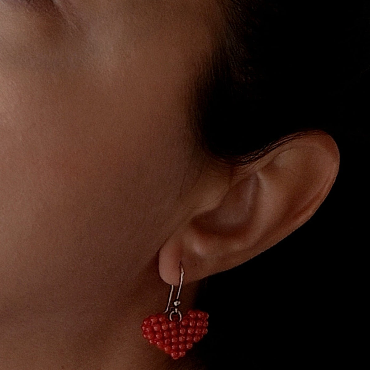 COROMEU Orecchini a forma di cuore in vero Corallo Sardo.