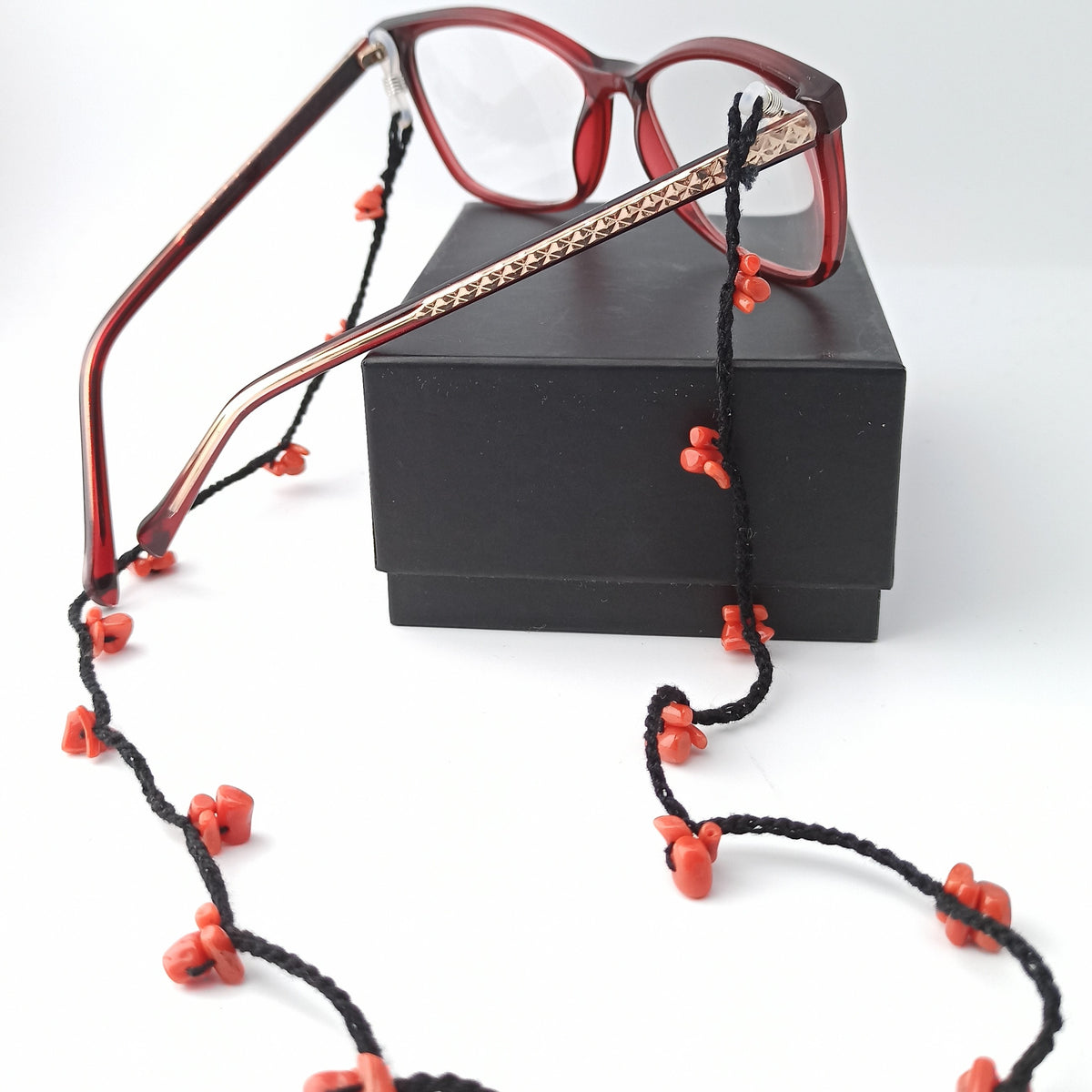 CORALET Catenella per occhiali ad uncinetto e corallo