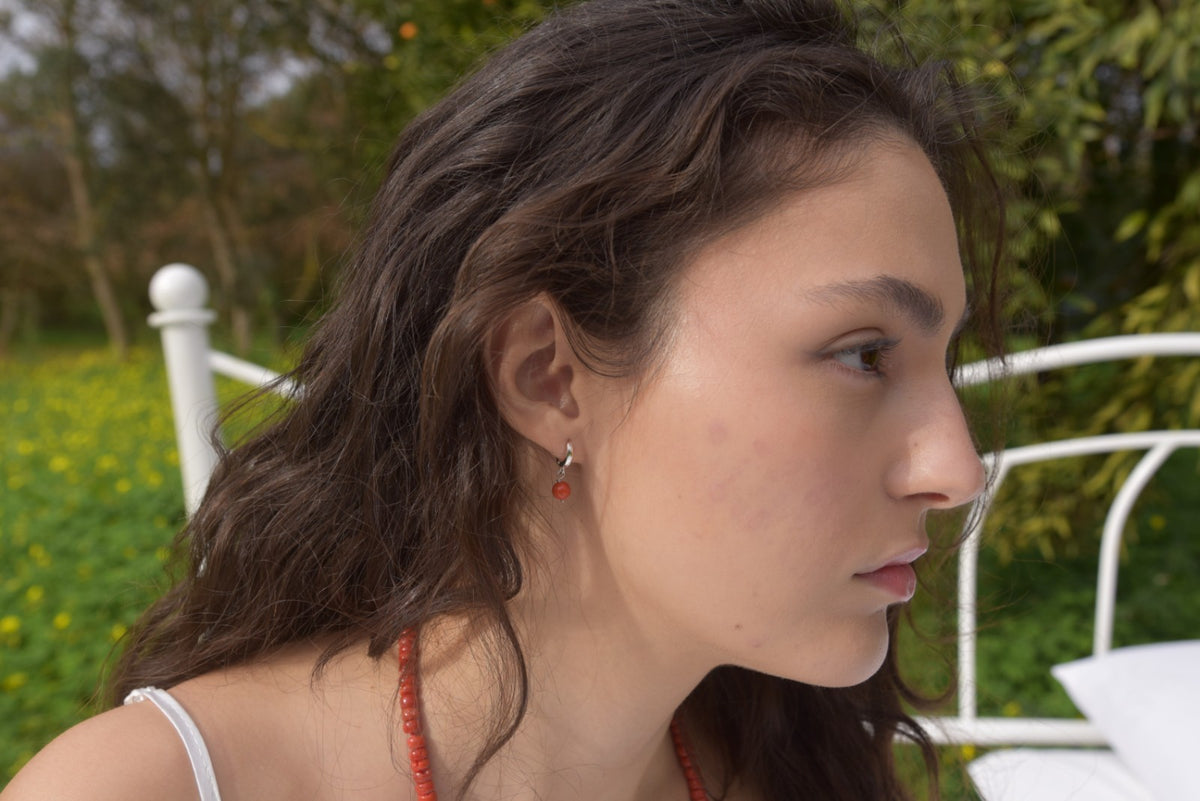 CERCHIO D'AMORE è un orecchino che sta sempre con te. Senza appesantirti ti dona splendore valorizzando il tuo viso. Un cerchio d'argento che sostiene una piccola sfera di corallo è sufficiente per farti sembrare sempre luminosa