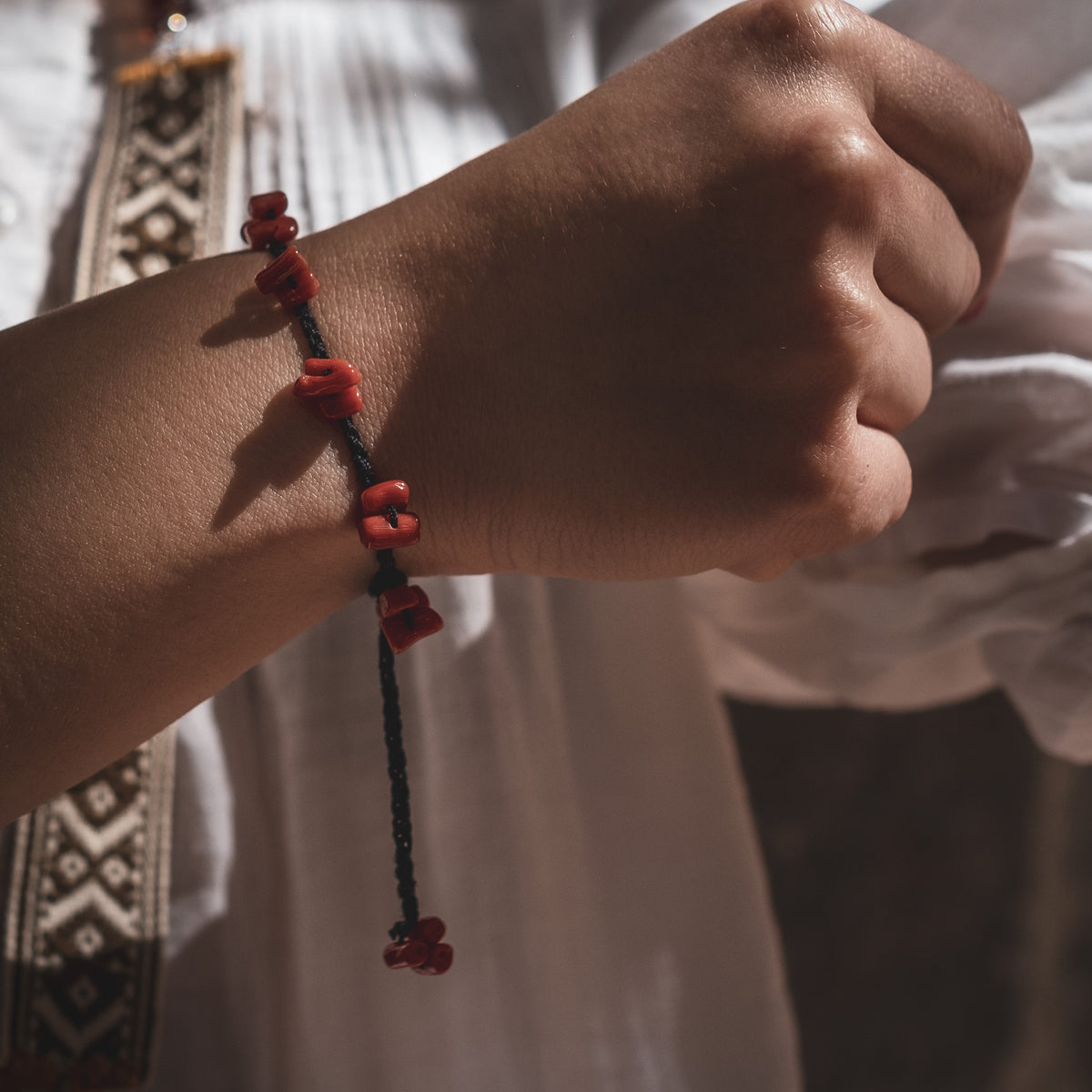Il bracciale CORALET è creato con il prezioso corallium rubrum (pescato seguendo le regole vigenti in materia di sostenibilità, rispetto della specie e dell'ambiante circostante)