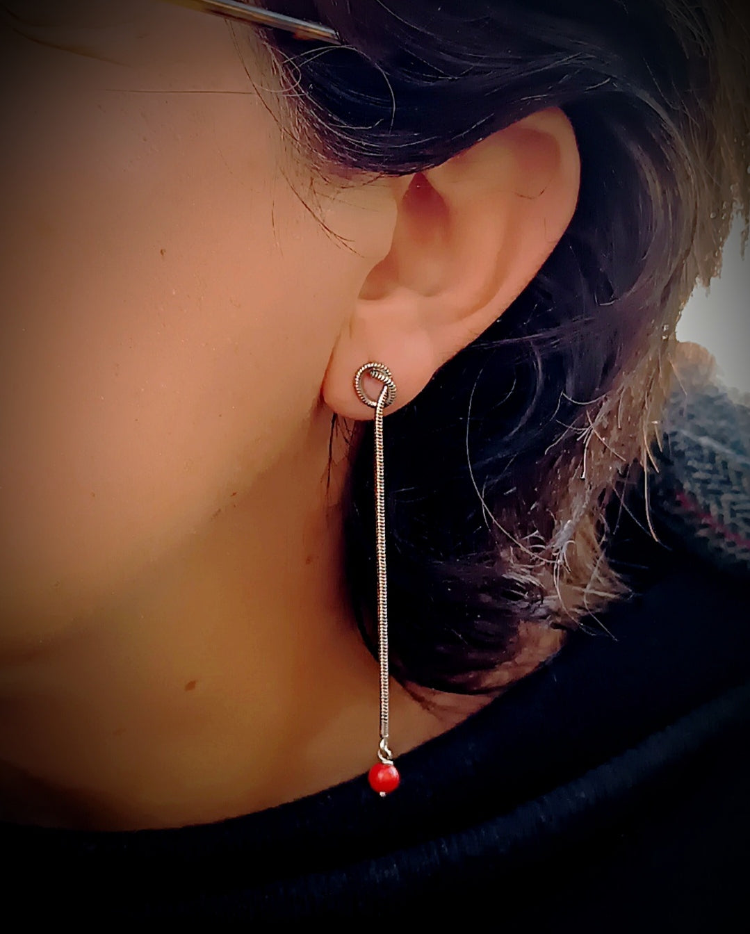 SUSSURRO DI CORALLO | ORECCHINO PENDENTENTE ARGENTO E CORALLO